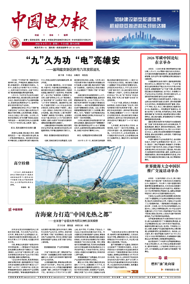 海口日报:中国能建发布前沿创新实践成果 以能源安全绿色低碳加快构建经济能源体系