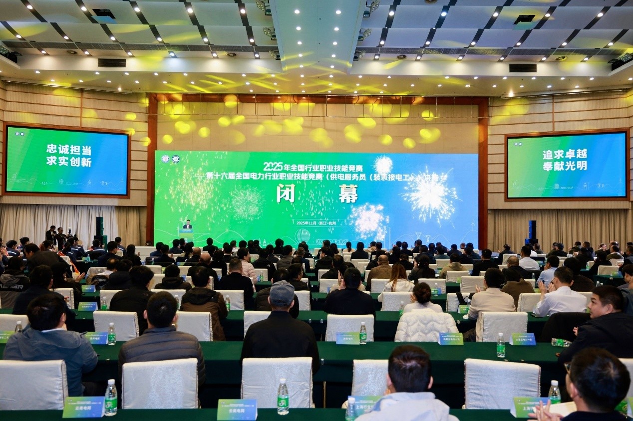 11月29日,第十六届全国电力行业职业技能竞赛(供电服务员-装表接电工)决赛在浙江杭州圆满闭幕。本次竞赛由中国电力企业联合会、中国就业培训技术指导中心主办,国家电网有限公司承办,国网浙江省电力有限公司协办。44支代表队、176名选手经过四天激烈角逐,展现了电力行业技能人才的高超技艺与专业风采。 中电联党委委员冮宇峰,国家电网有限公司营销部副主任夏勇出席闭幕式并讲话;竞赛裁判长、国家能源投资集团有限责任公司原安全生产总监王忠渠作竞赛技术点评,国家电网、南方电网、内蒙古电力以及各省电力行业协会等