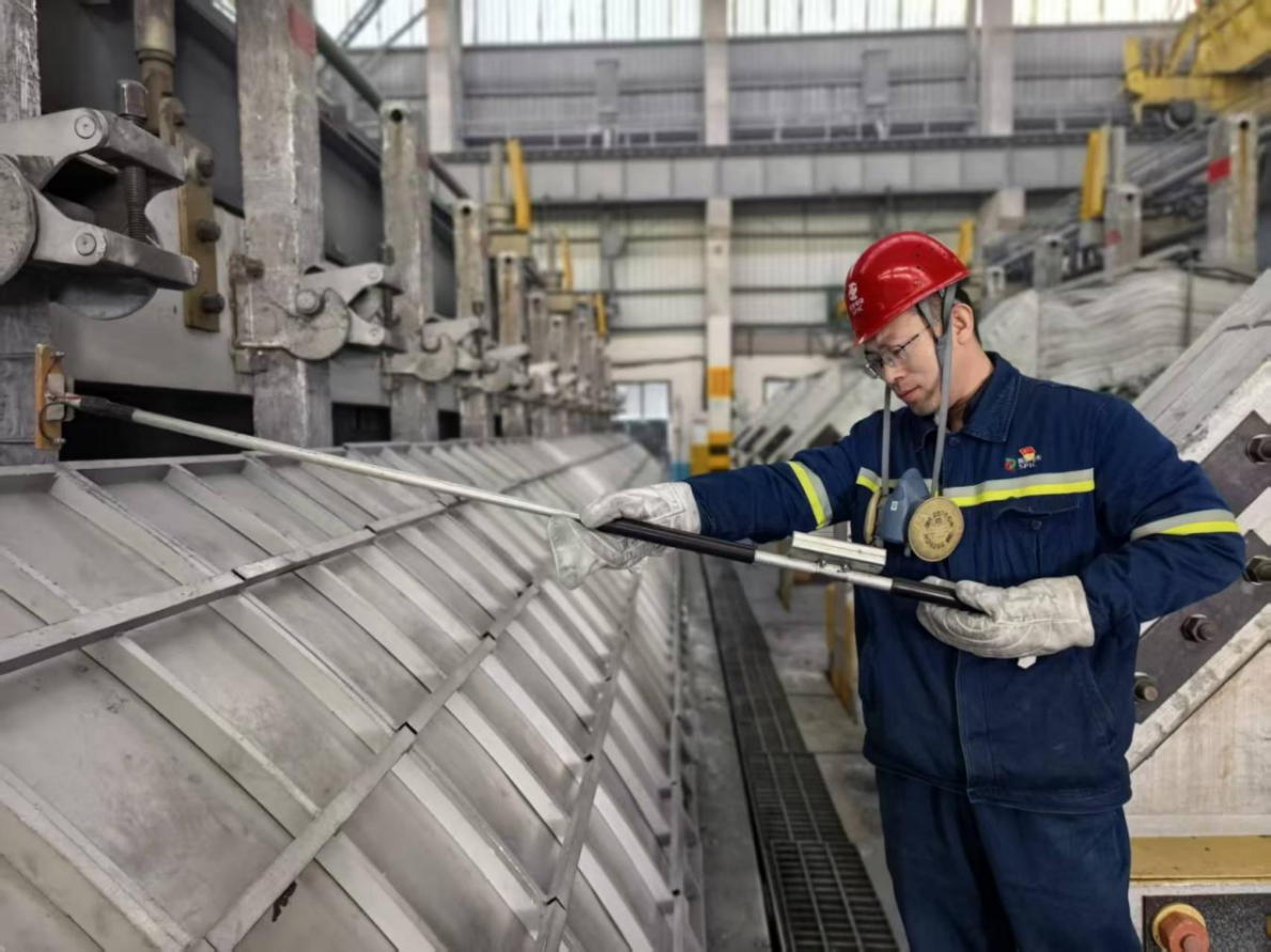 近日,国家电投集团铝电公司宁东分公司申请的《一种铝电解压降测量装置》获国家知识产权局实用新型专利授权。该装置凭借创新结构设计,成功破解传统测量设备操作繁琐、检测精度不足等痛点,为电解铝生产节能降耗、安全生产提供有力支撑。 在电解铝生产中,压降参数直接关系生产效率、系统安全及电能损耗控制,其中阳极导杆与母线的等距压降检测,是保障电解槽稳定运行、调整工艺参数的关键。传统测量设备需频繁翻转,效率低下且存在近距离接触电解设备的安全风险,无法适配复杂生产场景的精准检测需求。 该成果装置由握杆、固定板