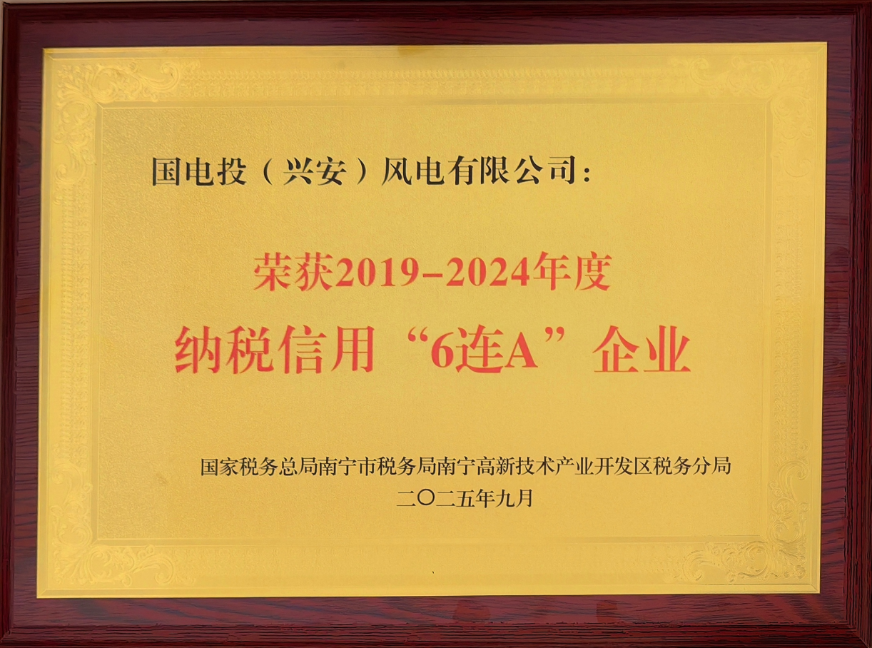 近日,国家电投集团广西公司兴安风电公司获南宁市税务局南宁高新技术产业开发区税务分局颁发的2019-2024年度“纳税信用‘6连A’企业”荣誉,展现了企业在依法纳税、诚信经营方面的卓越表现。 自成立以来,国家电投集团广西公司兴安风电公司高标准做好税务合规管理工作,不断完善税务管理制度和流程、定期开展内部税务知识培训等,确保税务申报的准确性和及时性。同时,强化与税务机关常态化沟通,主动汇报经营情况与涉税诉求,积极配合税务检查,构建良性税企关系。优异的纳税信用已成为宝贵的无形资产,为该公司稳健经营