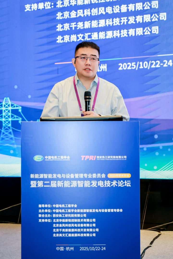 会议高质量论文交流环节由专委会秘书长、西安热工研究院新能源技术部总工程师谢小军主持。深圳量云能源网络科技有限公司总经理银磊、南京南瑞继保电气有限公司电力系统分析部副经理葛景、云南电力试验研究院(集团)有限公司新能源服务事业部经理伍阳阳、上海应谱科技公司副总工程师胡锦钢、上海国缆检测股份有限公司中高压产品检测部项目工程师于辰风、北京金风慧能技术有限公司数据分析助理工程师王金发、华北电力大学硕士研究生张起瑞、西安热工研究院有限公司电气技术部工程师李志鹏等八位高质量论文作者分别作题为《基于智能体建模的电力量化交易决策系统构建与实现》《构网型技术支撑新型电力系统的思考与实践》《平抑风电波动的混合储能系统容量优化配置及双层能量管理策略》《智能螺栓技术治理叶根螺栓疲劳断裂的应用研究》《光伏发电场和陆上风电场用电缆故障案例分析与讨论》《新能源场站产能评估技术研究》《基于ICEEMDAN+VMD的CNN-BiLSTM-Attention短期风速预测》《风电预测新方法:全局曲率-稳定性分析法让风储更默契》的报告, 内容涵盖电力交易、构网型技术、储能优化、故障治理、产能评估、风速预测等多个新能源热点方向,充分展现了青年科技工作者们的创新活力与研究深度。
