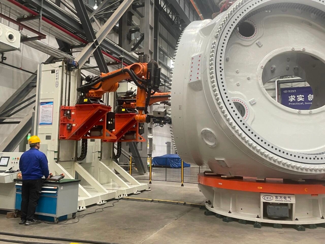 在东方电气风电(福建)有限公司的生产车间里,工人们组装的全球首台26兆瓦海上风电机组由3万多个零部件组成,实现了海上风力发电机组零部件100%国产化。