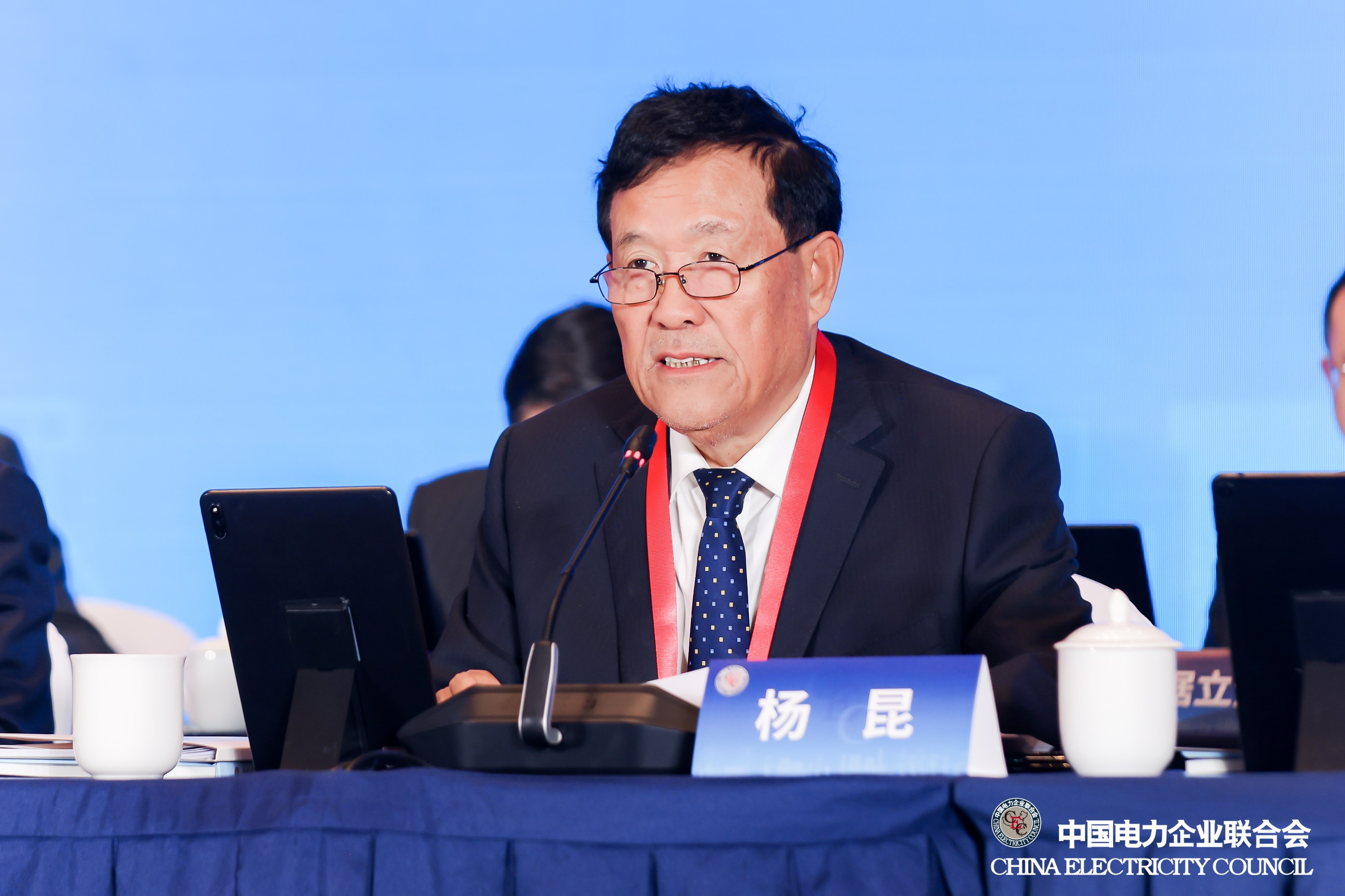 中电联理事长辛保安主持会议并讲话。中电联党委书记、常务副理事长杨昆作工作报告。中国大唐集团有限公司党组书记、董事长吕军,国家电网有限公司董事、党组副书记邵国勇,中国电气装备党委副书记、总经理闫华锋,中国华电集团有限公司副总经理、党组成员吴敬凯,中国长江三峡集团有限公司副总经理、党组成员吕庭彦,浙江省能源集团有限公司党委书记、董事长刘盛辉,内蒙古电力(集团)有限责任公司党委书记、董事长张海峰,广东省能源集团有限公司党委委员、副总经理高振,华北电力大学党委常委、副校长房方,协鑫集团党委书记、副董事长、总裁朱钰峰,正泰集团轮值总裁栾广富,华为技术有限公司副总裁、华为电力数字化军团CEO孙福友,北京能源集团有限责任公司副总经理关天罡等理事长单位、副理事长单位、常务理事单位和理事单位负责人及代表,中电联党委委员、专职副理事长安洪光,党委委员、秘书长郝英杰,党委委员王思强,监事长、副秘书长出席会议。
