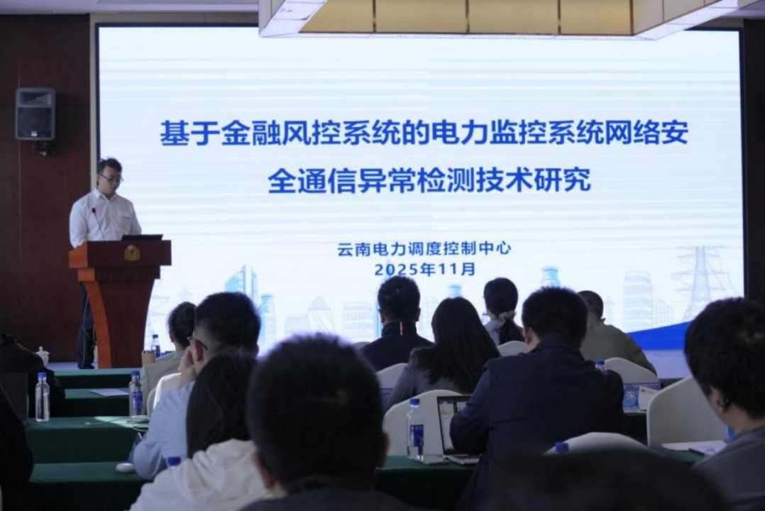 云南电网公司系统运行部网络安全科网络运行专家林旭作题为《基于金融风控系统的电力监控系统网络安全通信异常检测技术研究》的汇报。报告通过类比金融风控特点,研究电力监控系统风险防控策略,提出了通信异常监测技术方案。