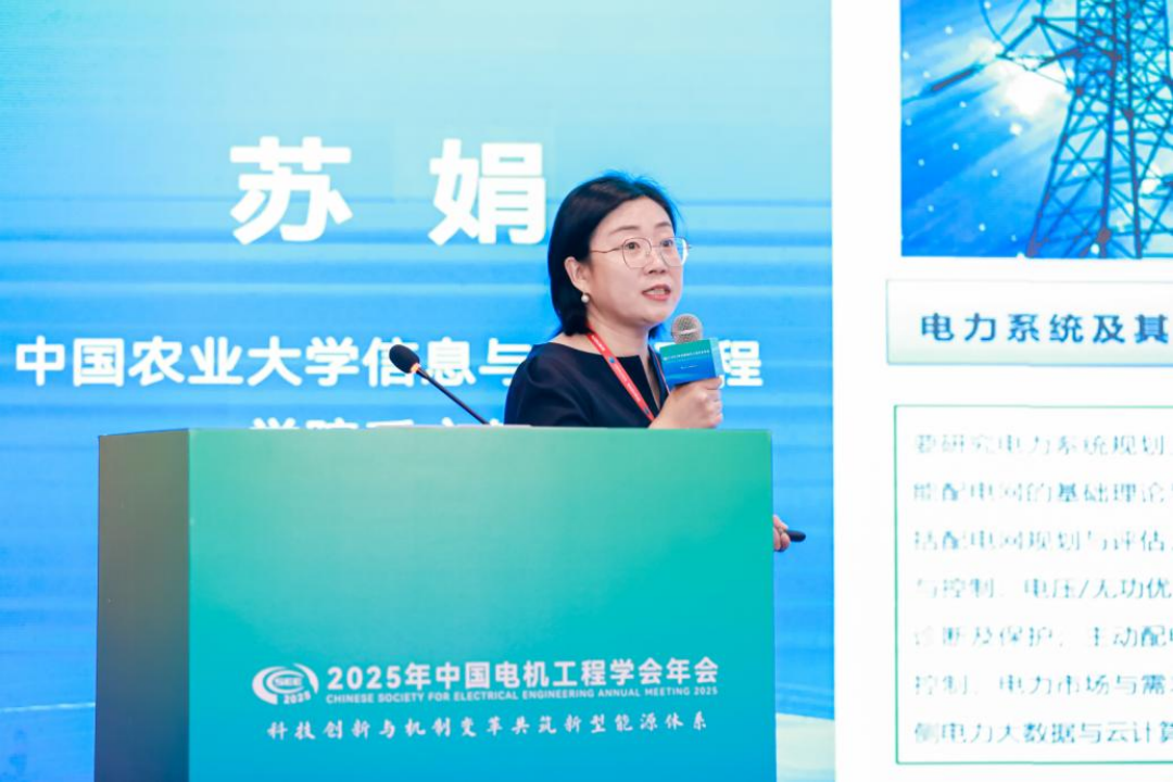 中国农业大学信息与电气工程学院系主任苏娟作题为《农村智慧能源关键技术与实践》的报告。报告围绕我国乡村振兴相关政策,介绍现代农业与农村电气化的关系,总结我国农村电气化的发展趋势与路径。结合科研与实践工作,介绍农村智慧能源关键技术与实践成果,包括县、乡、村农村能源互联网规划,多种农业生产场景下的农村源网荷储协同优化控制方法。报告最后介绍北京平谷、山东东营电力科技小院的建设情况,以助推能源高效利用。