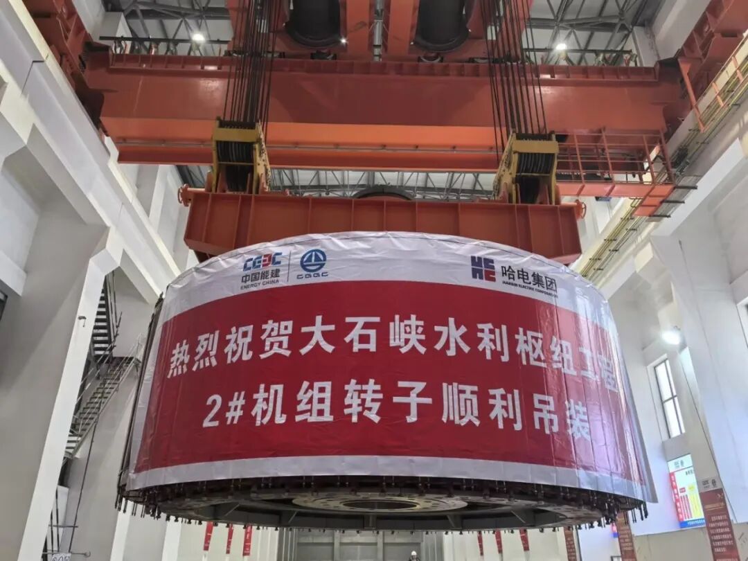 12月6日,中国能建葛洲坝机电公司承建的新疆大石峡水利枢纽工程2号机组转子完成吊装,标志着电站2号机组正式进入总装倒计时。