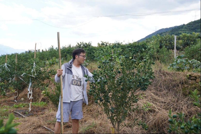 ▲王健正在金桔园里劳作 摄影:赵若伊