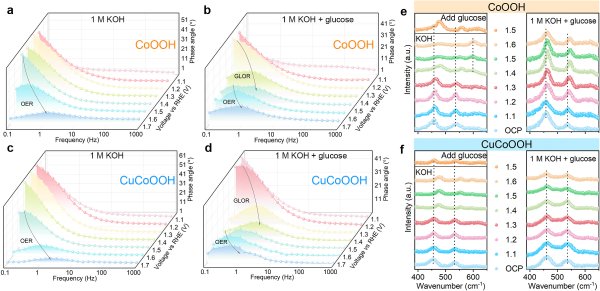 研究人员首先比较了多种地壳丰度较高的金属氧羟化物,确定CoOOH是葡萄糖氧化的理想起点。随后,他们系统性地引入不同掺杂元素,发现仅添加5mol%的铜即可显著提升CoOOH的选择性与电催化效率。经铜掺杂后,甲酸盐的生成率由50%提高至80%,葡萄糖氧化的起始电位降低约400mV,使得在碱性条件下实现高度节能的共电解成为可能。