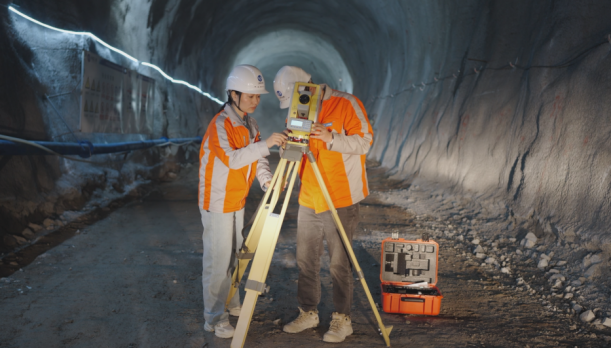▲ 作者(左一)与同事进行洞室开挖断面复测