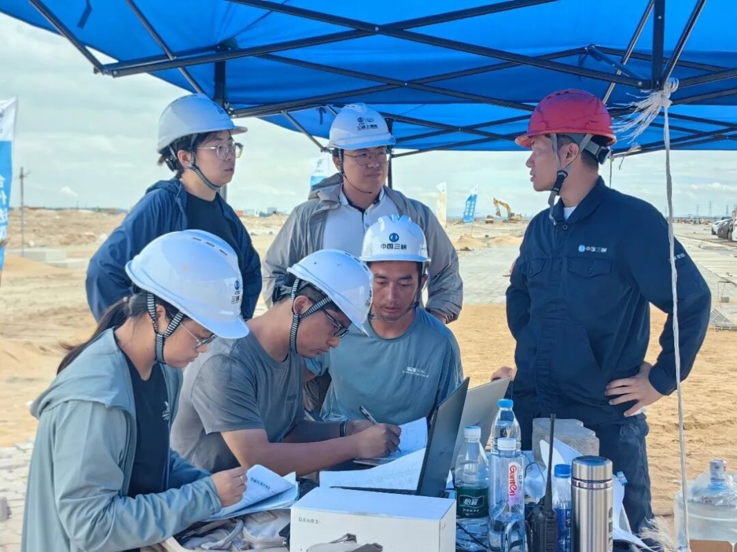 ▲范可(后排左一)在“三峡领航号”项目建设现场。供图:上海院