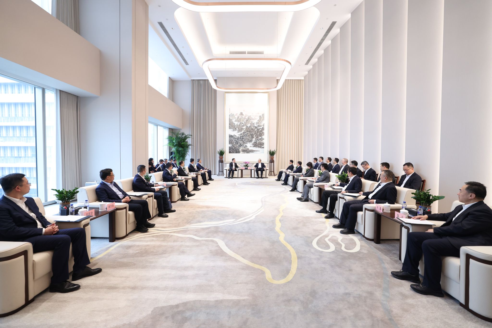 揭牌仪式前,中国电气装备、中国物流、上海市静安区进行座谈交流。