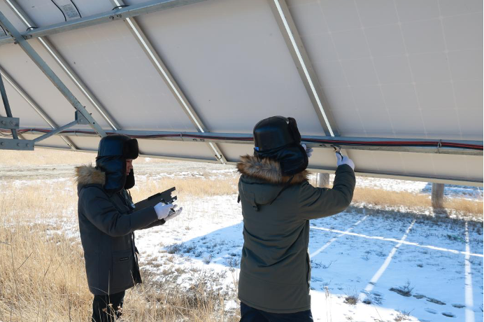 “越是佳节团圆时,越要绷紧安全保供弦。”早上7点,大安长富光伏电站运行班长张健已身着厚重防寒服、脚蹬防滑靴,配备铁锹、雪铲等工具,带领班组成员朱爽开启当日的巡检工作。