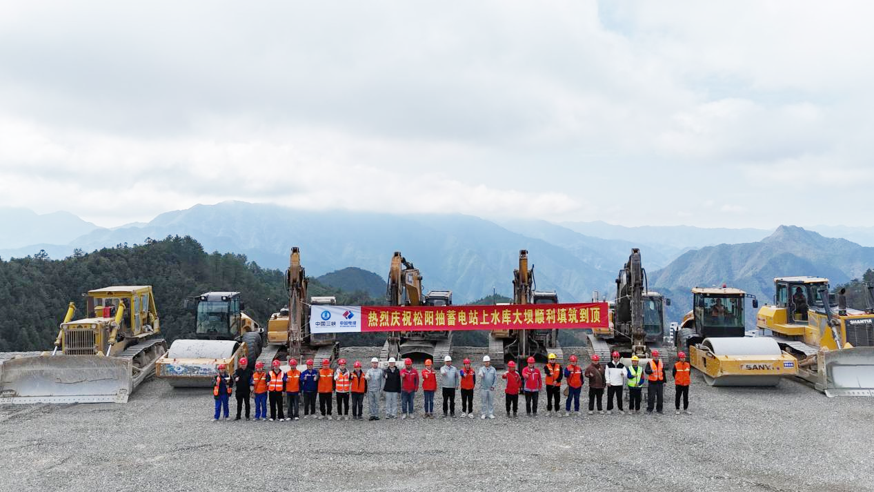 ▲ 浙江松阳抽水蓄能电站上水库主坝顺利填筑到顶现场合影。
