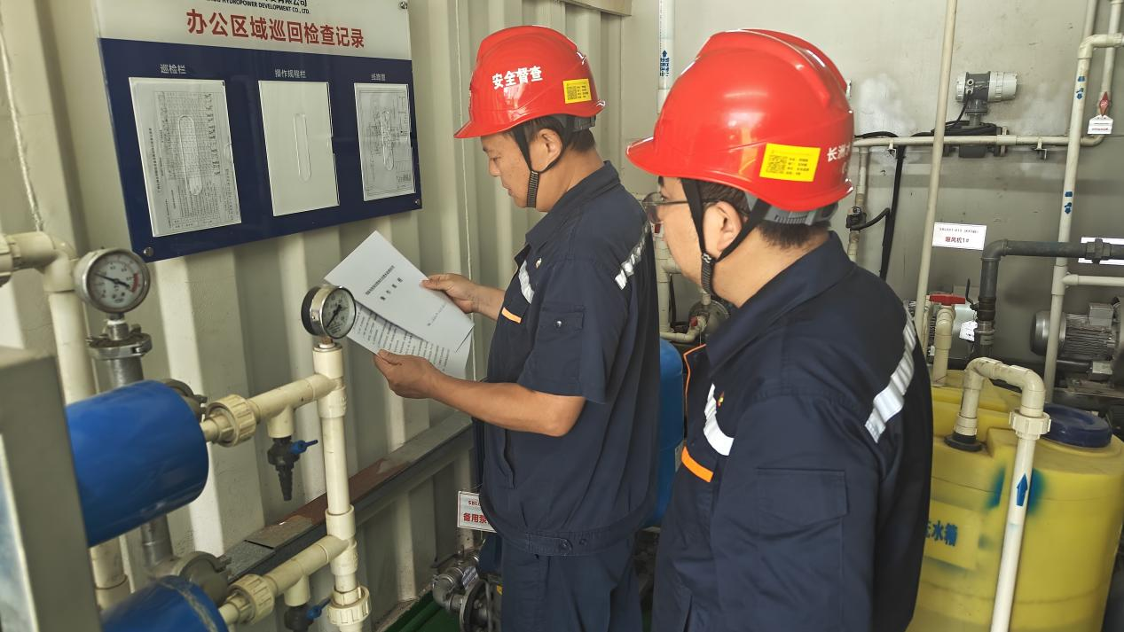 长洲水电公司安环部检查营地一体化污水处理系统设备设施运行情况
