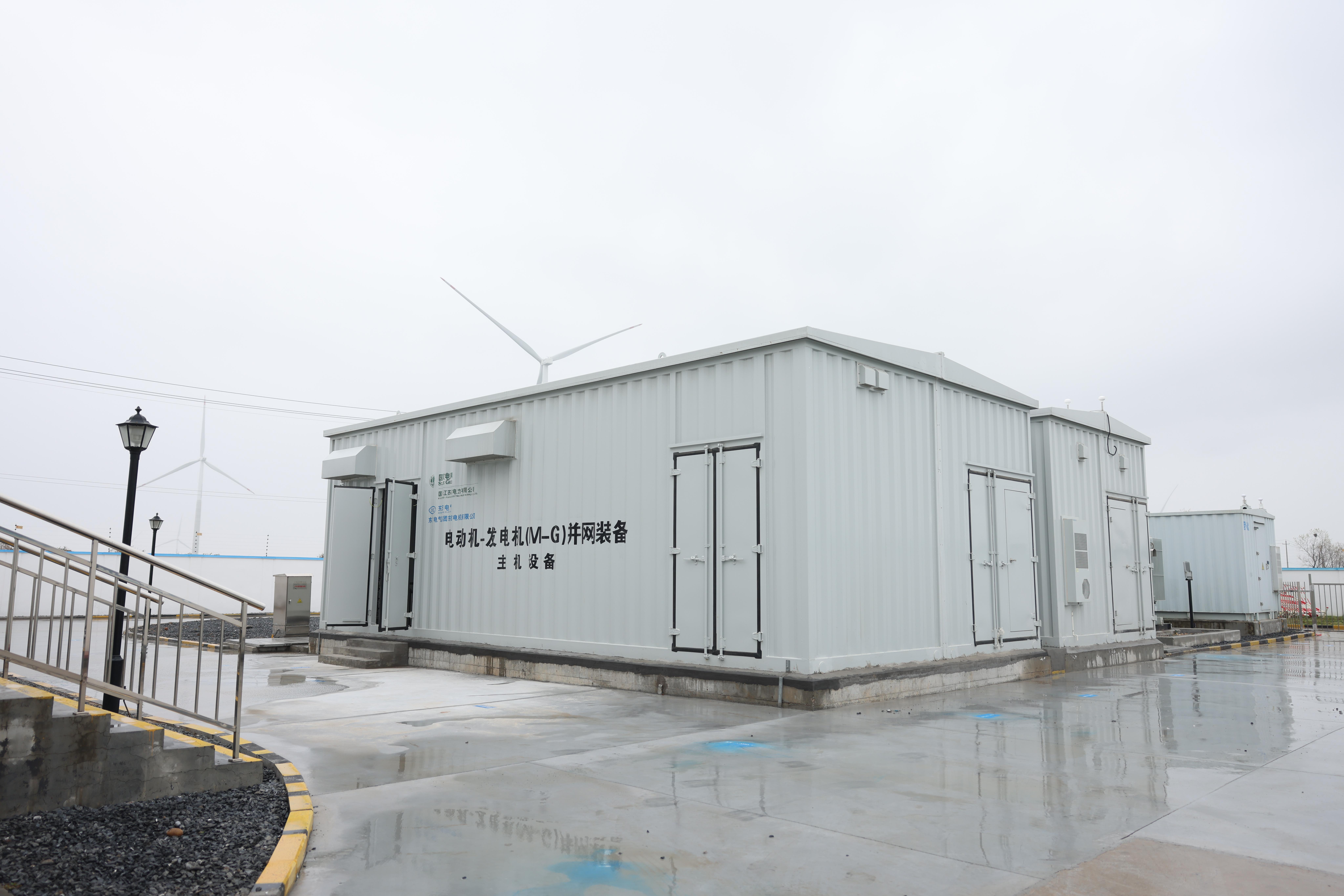 为破解难题,国网江苏电力有限公司联合中国东方电气集团有限公司等单位,历时多年攻关,研发成功4.5兆瓦并网稳定器,安装在海上风电集群并网升压站内。它采用“电动机—发电机”双机组结构,海上风电先驱动电动机,再由电动机带动发电机同步并网,用机械结构给新能源补上“惯性短板”,赋予它传统发电机的稳定特性。