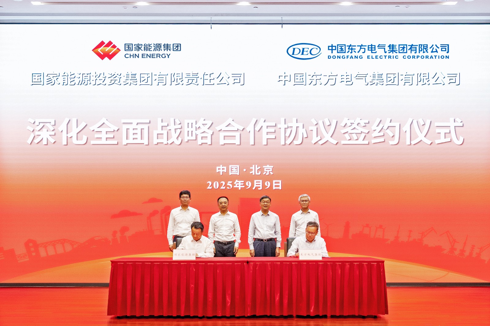 9月9日,国家能源集团党组书记、董事长邹磊在集团总部与东方电气党组书记、董事长罗乾宜举行工作会谈,并共同见证双方签订深化全面战略合作协议。国家能源集团总经理、党组副书记冯来法,党组成员、副总经理傅振邦,东方电气总经理、党组副书记张彦军,党组成员、副总经理王军参加会谈。傅振邦、王军代表双方签约。邹磊对罗乾宜一行的到访表示欢迎,对东方电气取得的成绩表示祝贺。他表示,东方电气集团是全球最大的能源装备制造企业集团之一,与国家能源集团共同承担着保障国家能源安全、推进绿色低碳转型的重要职责使命。近年来,双