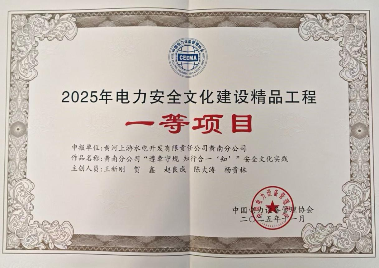 黄河公司一成果获2025年全国电力安全文化建设精品工程一等项目