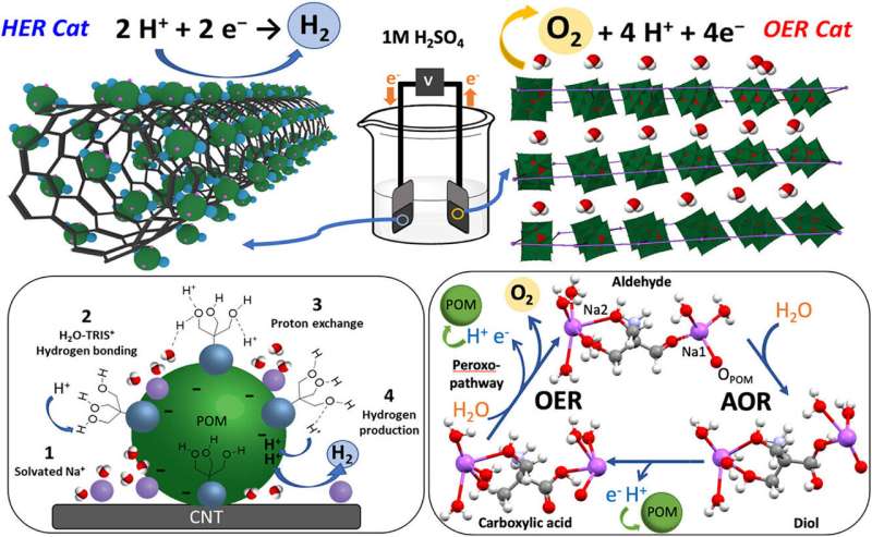 一项由西班牙生物化学与分子材料研究中心团队完成的研究显示,一种基于钒的分子化合物可通过不同组装方式,切换其催化反应路径,分别高效促进氧气或氢气的生成。该成果发表在《先进材料》杂志上。 研究团队将一种钒簇与碳纳米管结合,形成混合材料。团队负责人玛丽亚・希门尼斯-洛佩兹指出:“关键不在于金属簇本身,而在于其周围有机阳离子的排列方式。” 当材料与纳米管物理混合时,被称为TRIS的阳离子被锁定在晶体结构中,促使反应通过特定氧化机制产生氧气。而当材料以定向方式组装时,同样的阳离子被释放并朝向表面,起到