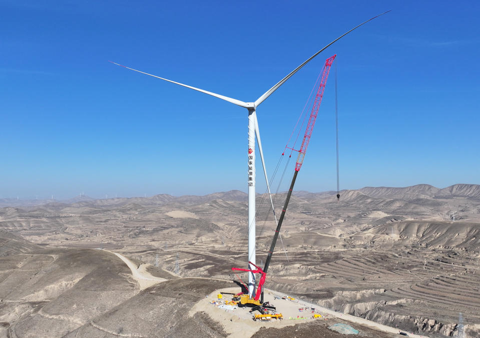 宁夏单体最大风电项目首台风机吊装完成
