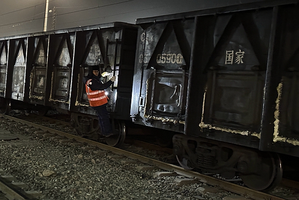 随着一系列的联控和确认信号响起,列车缓缓推进。此时,室外温度已降至零下25℃。作业完毕后,连接员葛晓虎站在前端车辆的车梯上,随身携带着行车记录仪,肩挎频调设备,紧握车梯,迎着刺骨的寒风,目视着前方,丝毫不敢放松警惕,因为这时他便是司机的眼睛,安全责任重大。