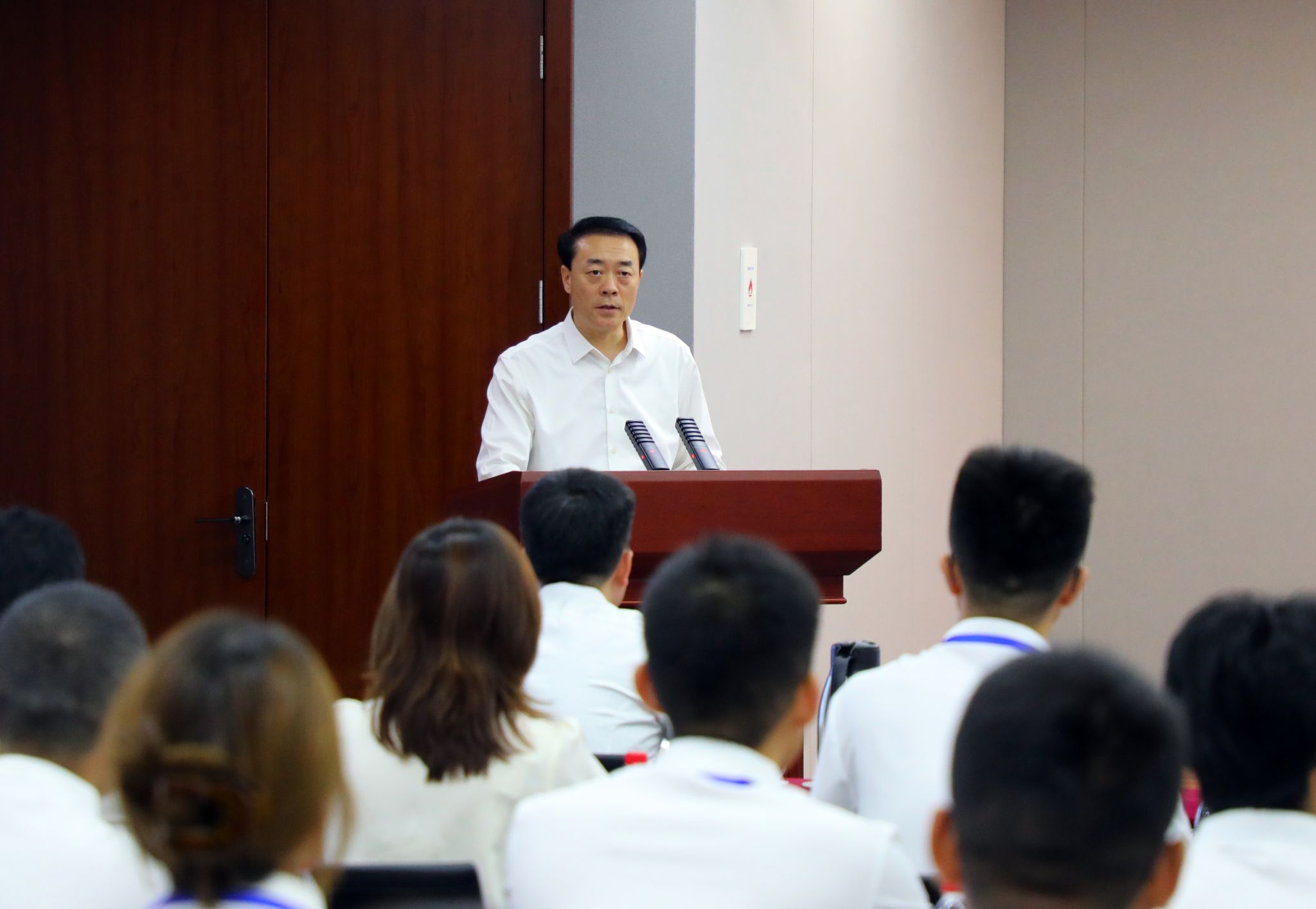 孟汉峰在主持时强调,全体新员工要牢记“国之大者”,将个人理想融入国家战略,在实干担当中锤炼过硬本领,以终身学习拥抱变革,铸牢廉洁自律的价值根基,努力成为“眼里有光、脚下有路、心中有责”新时代中国电气装备人。