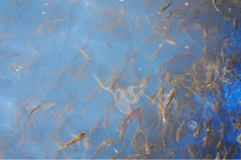 ▲等待放归长江的圆口铜鱼 摄影:但棣瑶
