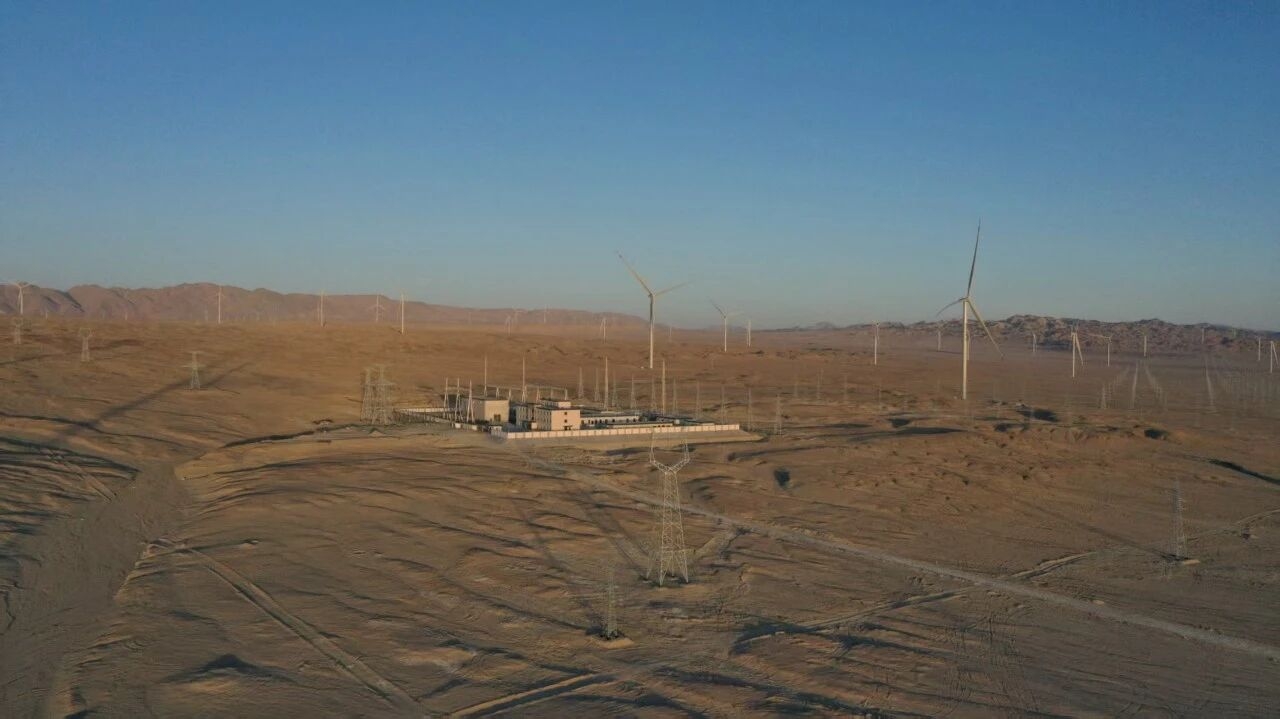 ▲ 戈壁深处,升压站、风电机组和外送线路星罗棋布。本文摄影:徐强 卿杰 胡朋