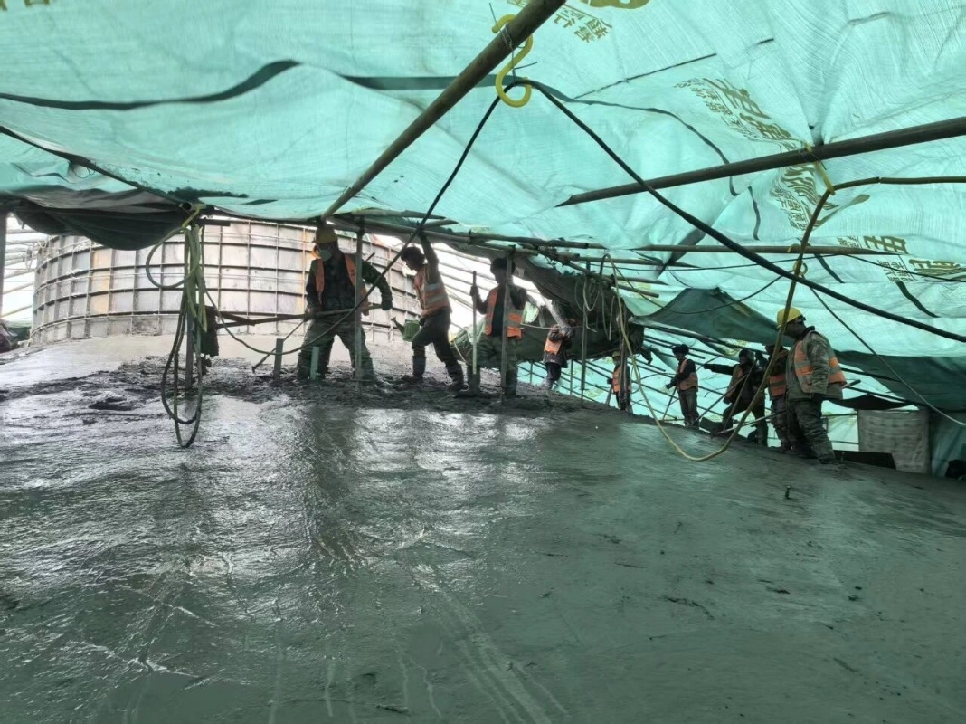 一场和时间赛跑、与温度较量的战役就此打响。在混凝土拌合站,工人用60度温水搅拌混凝土;超两小时的运输途中,罐车裹着工程电热毯;浇筑现场,泵车管道缠绕保温丝,基坑上方搭起保温棚。
