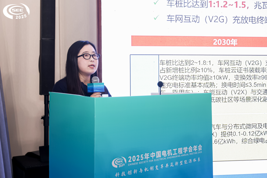 国网智慧车联网技术有限公司李培军作题为《电力市场情景下的车网互动实践与思考》的报告。报告梳理了车网互动参与电网调控的商业化路径,分析了运营商盈利痛点,并提出完善交易规则、优化收益分配的建议,为车网互动规模化商业落地提供了参考。