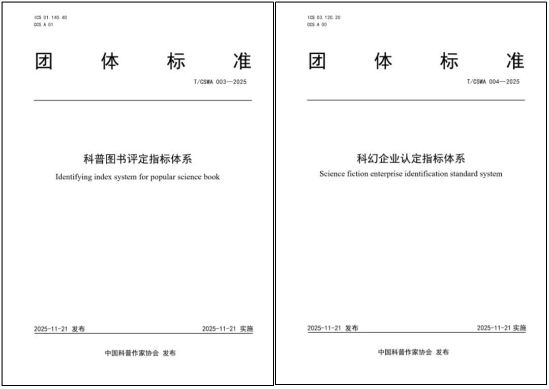 中国科普作家协会在2025年全国科普创作大会上发布的两项团体标准《科普图书评定指标体系》《科幻企业认定指标体系》,也均由科研院参与起草。