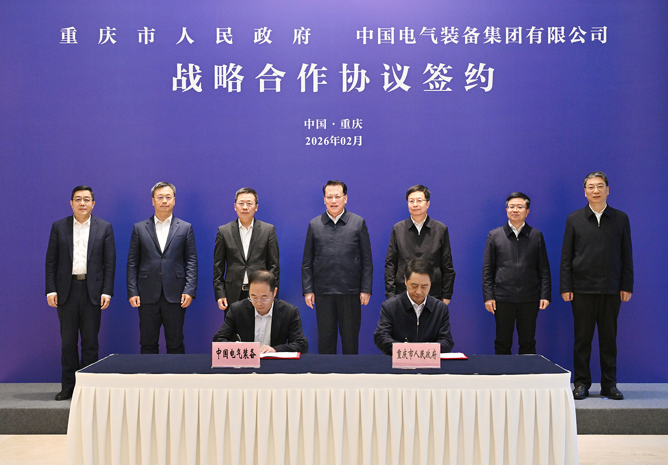 ▲2月5日下午,重庆市人民政府与中国电气装备集团有限公司签署战略合作协议。