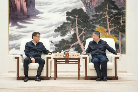 4月24日,中国华能集团有限公司董事长、党组书记温枢刚在集团公司总部会见上海市普陀区委书记胡广杰。集团公司副总经理、党组成员郝金玉参加会见。