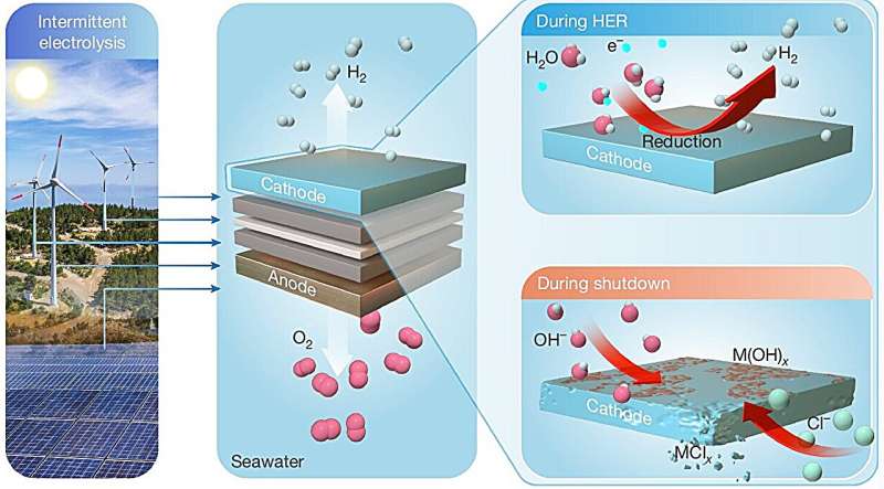 香港城市大学(CityUHK)科学家称,一种更能抵抗功率波动的新型阴极,可让(海)水电解更具可持续性、成本效益更高,且更适配与间歇性可再生能源在实际应用中结合。 该系统能稳定运行10,000小时,较多数以往方法运行时间更长,即便在太阳能或风能等能源供应波动的情况下也能稳定运行,有助于迈向无碳未来。 材料科学与工程系刘斌教授解释,研究主要解决间歇性碱性(海)水电解过程中的氧化和性能损失问题,如反向电流、自氧化、自放电或氧气交叉等,通过在电极上使用特殊保护层实现。 这项已发表在《自然》杂志上