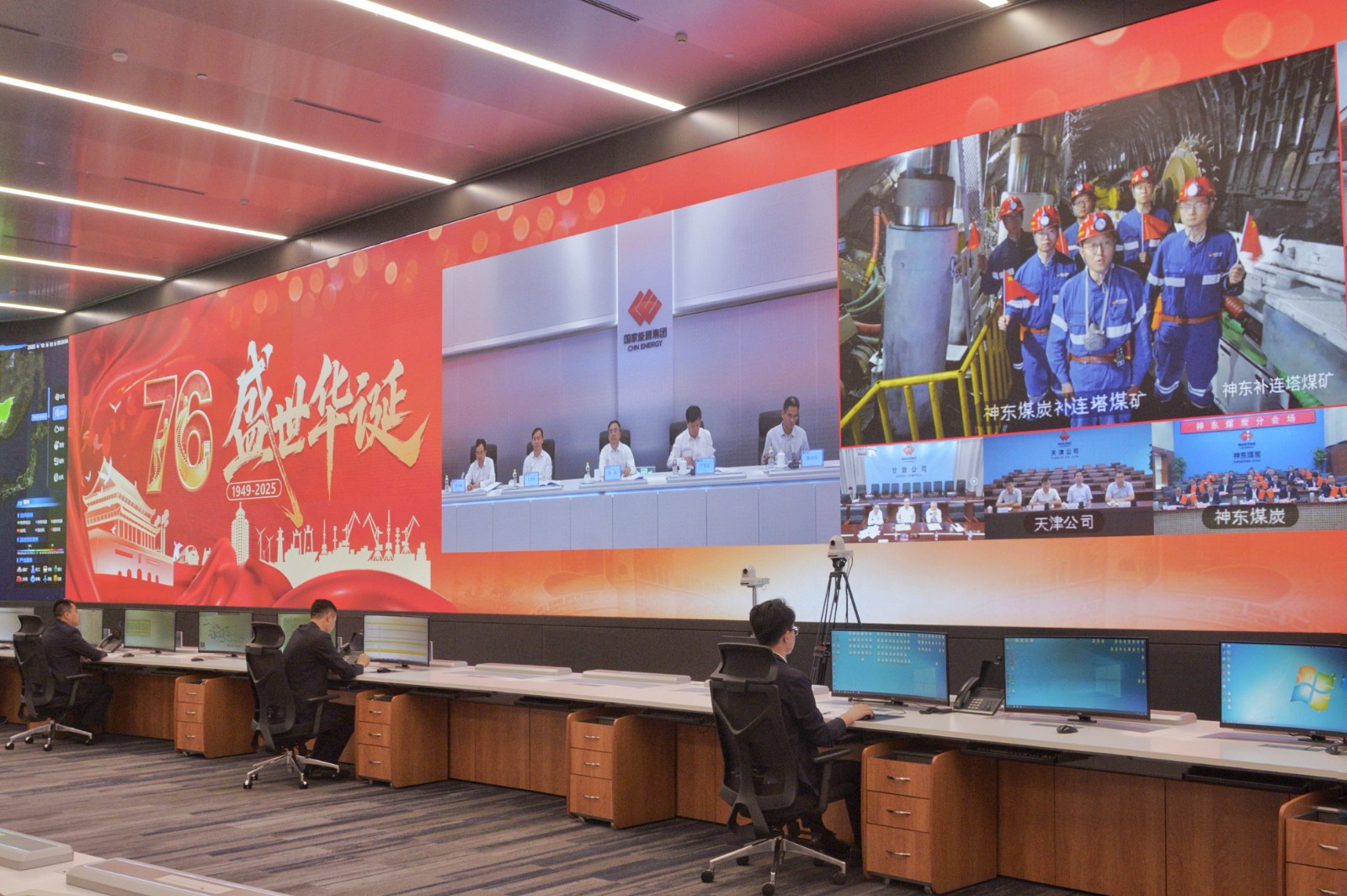 10月1日,在举国欢庆、共度佳节的时刻,国家能源集团在生产调度指挥中心召开2025年国庆中秋假期生产运营调度视频会。集团公司党组书记、董事长邹磊代表集团党组,亲切看望生产调度指挥中心在岗值班干部员工,通过视频连线形式向两节期间坚守岗位的生产运营一线干部员工致以节日问候,并对做好国庆、中秋两节期间和四季度工作作出安排部署。会上,邹磊视频连线慰问了我国最北端燃煤供热电厂内蒙古呼伦贝尔电厂、集团公司“以煤为基”发展战略重要支撑矿井神东煤炭补连塔煤矿、国家重大专项煤制油关键技术攻关前沿煤制油液化生产中
