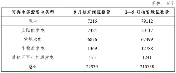 国家能源局发布2025年9月全国可再生能源绿色电力证书核发及交易数据