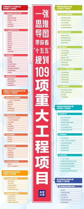 内河高等级航道、“沙戈荒”等新能源基地、海上风电基地、“三北”工程等纳入“十五五”109项重大工程项目 本网讯(徐强 毛庆)围绕推动“十五五”目标任务落实落地,统筹考虑战略性、牵引性和连续性,“十五五”规划纲要草案提出6方面109项重大工程项目。 内河高等级航道、“沙戈荒”等新能源基地、海上风电基地、绿色氢能、“三北”工程六期、地下管网建设改造、国家实验室体系等纳入“十五五”109项重大工程项目。一张思维