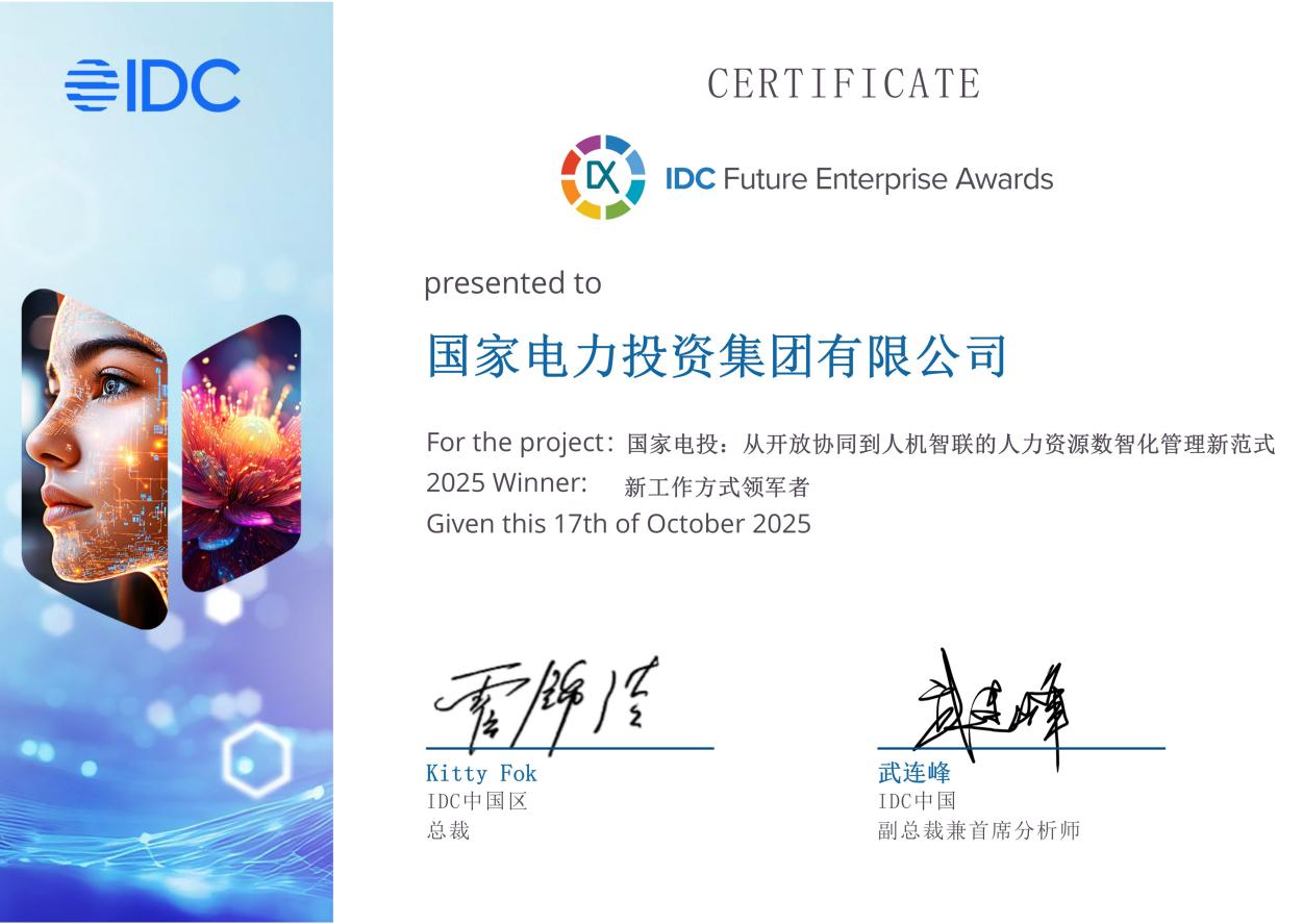 国家电投集团智慧人力资源管理系统获“2025 IDC中国未来企业大奖”优秀奖