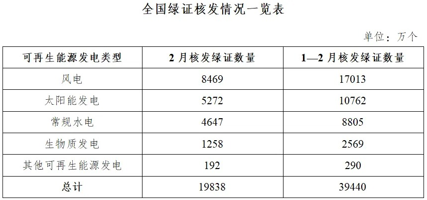 国家能源局发布2026年2月全国可再生能源绿色电力证书核发及交易数据