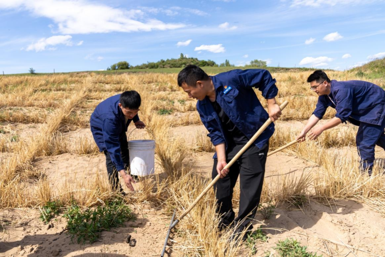 ▲ 三峡三北公司工程建设班组在克什克腾旗进行沙地治理