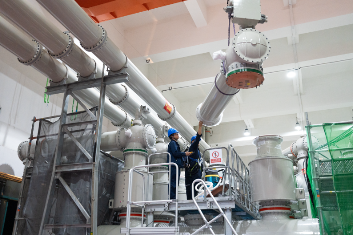 ▲三峡地下电站500千伏气体绝缘开关设备(GIS)更换工作现场 摄影:吕晓雯