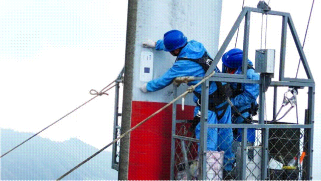 ▲三峡能源张家川风电场,运维人员正在为风电叶片安装多参数智能监测装置。该装置可对叶片状态进行实时监测与智能诊断。 三峡能源供图
