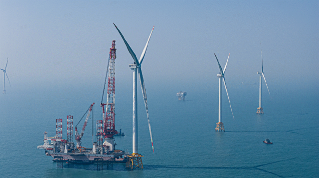 ▲1月13日,全球首台20兆瓦海上风电机组吊装现场 摄影:周骏威
