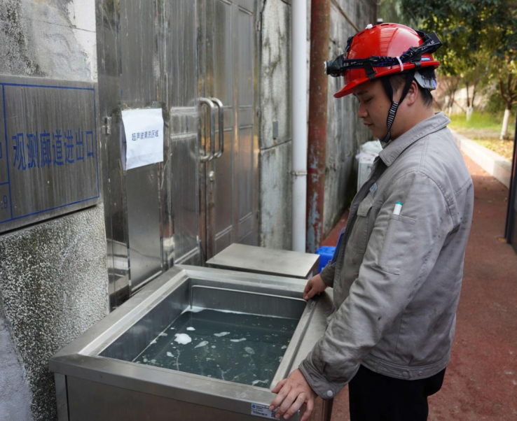 在船闸上游入口处,一套“仰扫式船舶吃水检测系统”设备正在安装。这套系统通过多声呐阵列对船底进行仰面扫描,就像在闸底安装一个“水镜”。