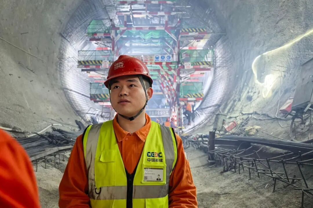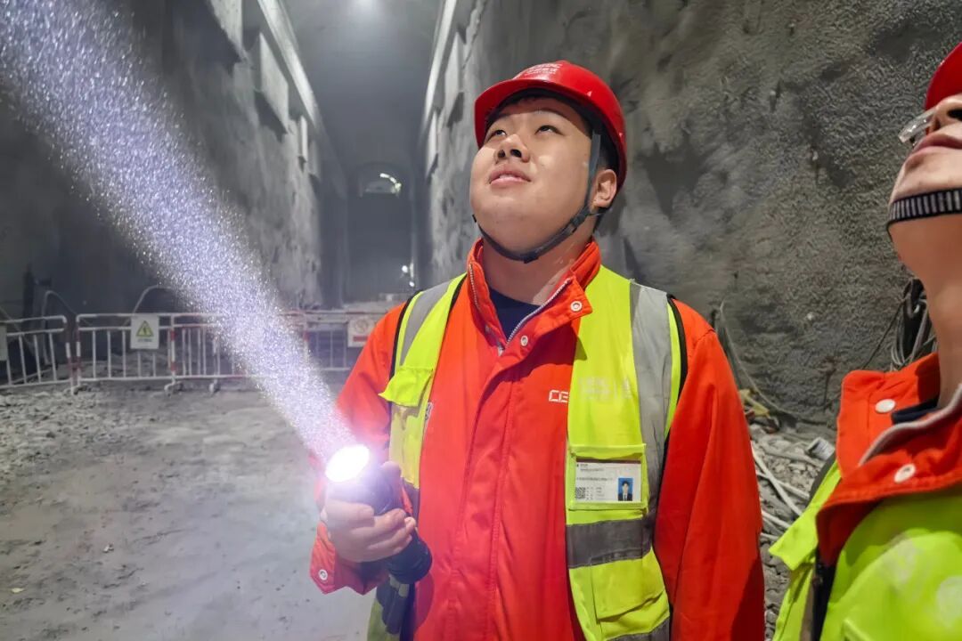 魏嘉冲了进去,蹲下来用手摸了摸那块被炸开的新鲜岩石,指尖触到的是冰凉的、带着火药味的断面。想起刚进场时,尾水隧道还是一个图纸,如今却已成型矗立在眼前;想起那时连最基本的护壁厚度都把控不准,急得半夜翻规范、打电话问导师,记了厚厚一本笔记;想起主动向经验丰富的工人师父讨教,问这问那,把工地当成了最踏实的“第二课堂”。